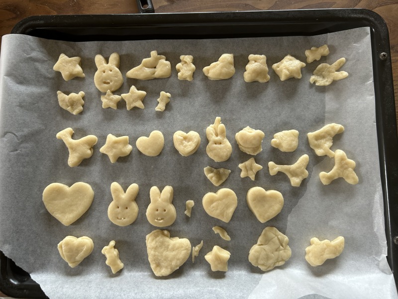 まだ園児なので作ると言っても型抜きをするだけのおやつ作りでしたが、自分で作ったクッキーを満足げに食べてくれました♪