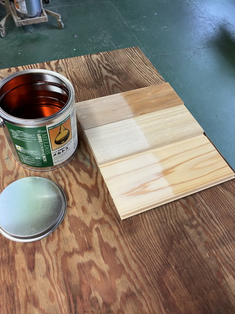 それぞれ木地の色が違うため、普通にクリアーを塗るとこのようになります。