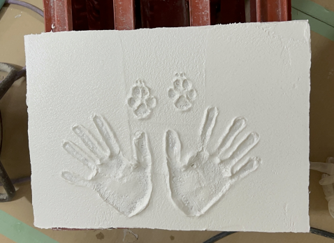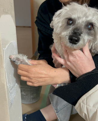 施主様のこだわりで何度かやり直しましたが、ワンちゃんがおとなしく対応してくれたのできれいな手形が取れました(*^^*)記念に残せてよかったと大変喜んでいただきまして、私たちもうれしかったです。