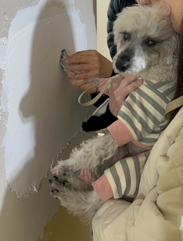 お客様よりワンちゃんの手形も残したいとご要望がありましたので、ご家族様と職人さんにも手伝ってもらって、みんなで執り行いました!