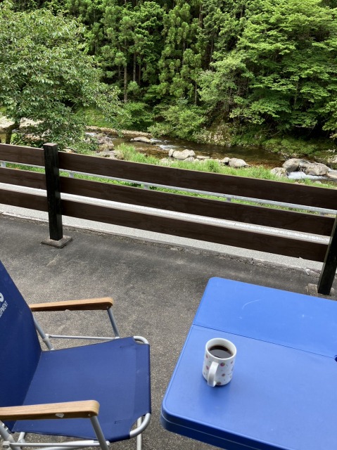 私、暑さ対策として休日の活動は早朝からスタートです。 朝食後のコーヒーは家の外で‥外で飲むコーヒーは美味しいですよね。 見慣れた田舎の風景ですが季節の移り変わりを感じられますね! 一昔前の表現だとリバーサイドでしょうか(笑)