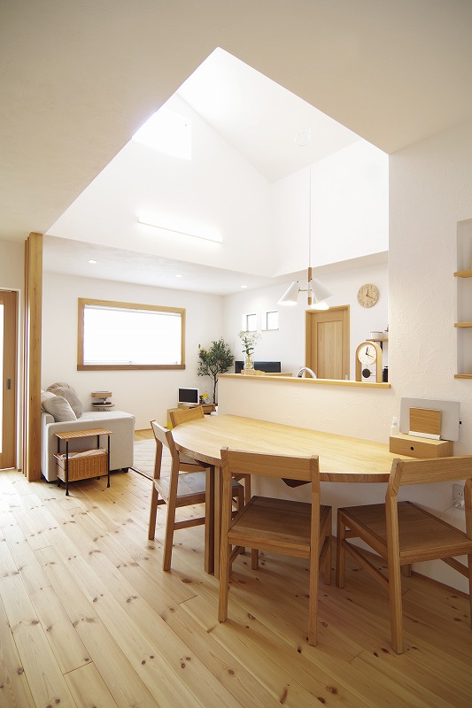 樹種によって硬さが違い、硬い木、柔らかい木とそれぞれに良さがあります。写真の床はパイン無垢を採用。柔らかい木なのでワンちゃん猫ちゃんの足にも優しいです。