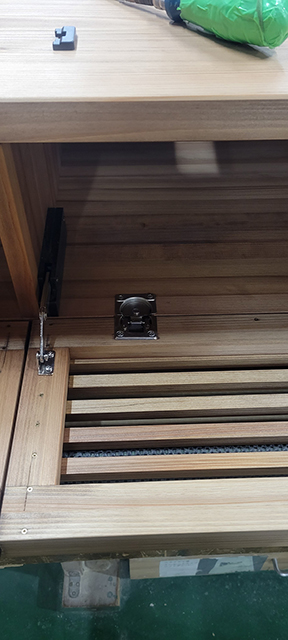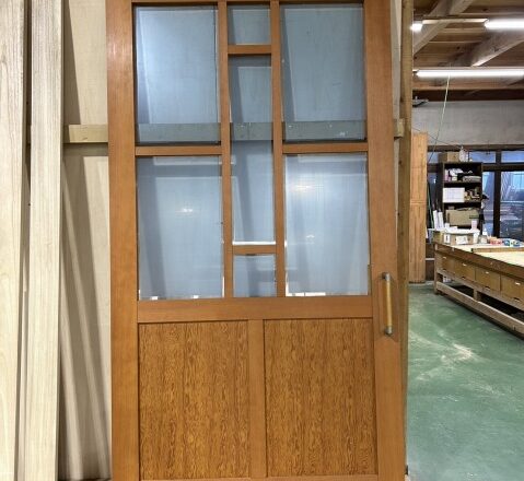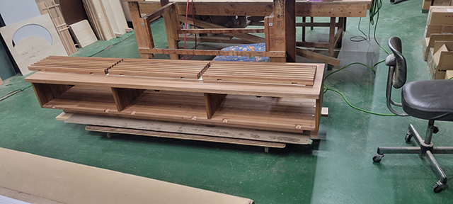 それでは本題の仕事の話に入ります、今回は横格子の扉をテレビボード本体に取り付けました。