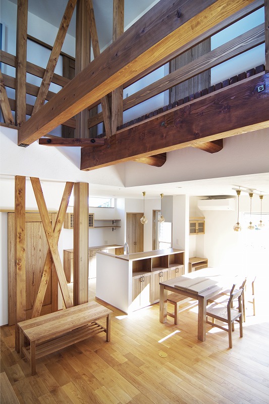 築40年ほどのお家なので、いろいろと問題もありましたが無事完成できました。外壁の色や内装の化粧梁、化粧柱、化粧筋違い、キャットウォークなどお客様の要望がたくさん詰まったお家になりました。