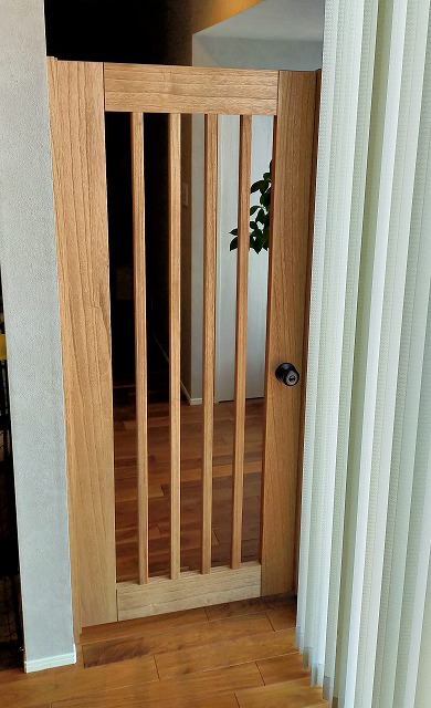 うちは2階リビングの間取りで、階段もリビングにあるのですが1歳の息子がだんだんと動きまわるようになってきたため、階段への入口を塞ぐ必要が出てきました。市販のベビーゲートも検討しましたが、見た目と使い勝手を重視して自社製建具を設置することに決めました。
