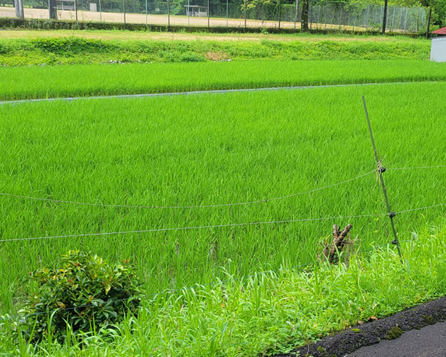 本社工場の近くでは田んぼの稲が元気よく育ってきています。