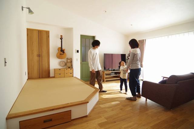畳コーナはリビングの一角に3帖~4.5帖のスペースを間仕切りなしで造ることが多いです。ここで考えなくてはいけないのはのが小上がりにするのか、しないのか?というところだと思います。