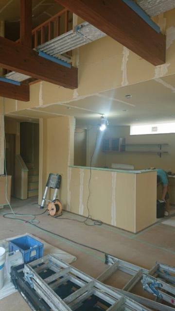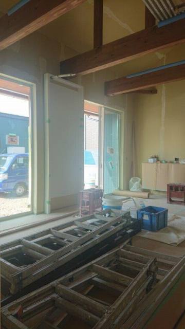 只今、漆喰で内装仕上げの作業中です。