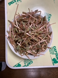 今回も春の味覚つくしを取ってきたので、つくしのハカマを皆で取り食卓に上がりました。