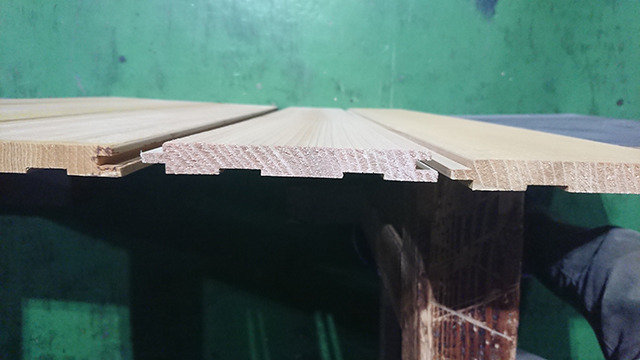 外部の天井や壁面に貼る杉材の羽目板加工について