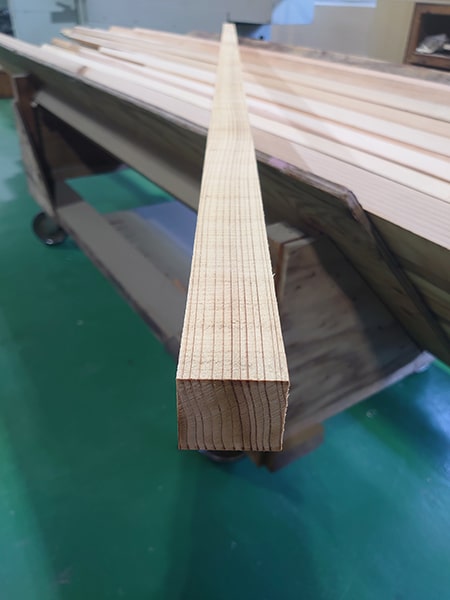 通す前の材料はカンナもかかっていない角材ですが、