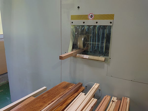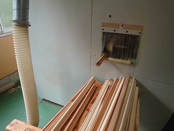 見ていただくのは建具枠をふちどる額縁材の加工の様子です