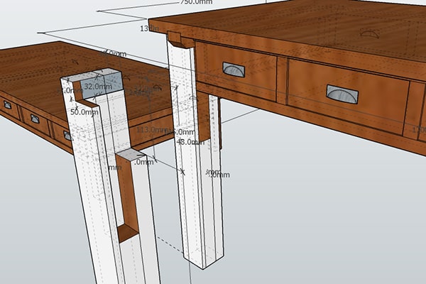 まず設計図を書きます。既存の脚は切断せず、新しい脚で包み込むような設計にしました。