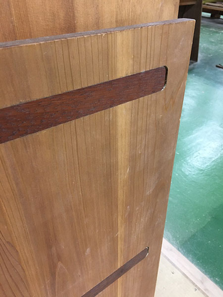 これも反りや曲がり対策として2枚剥ぎで加工され、製作ギリギリま