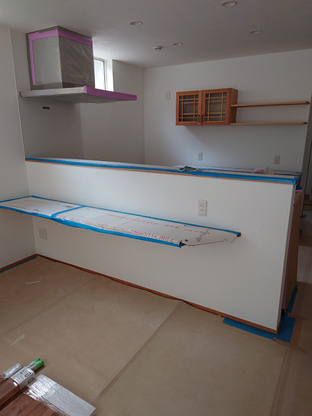キッチン前にはカウンターがあり、子供がお絵描きしたり、勉強できるスペースになります。