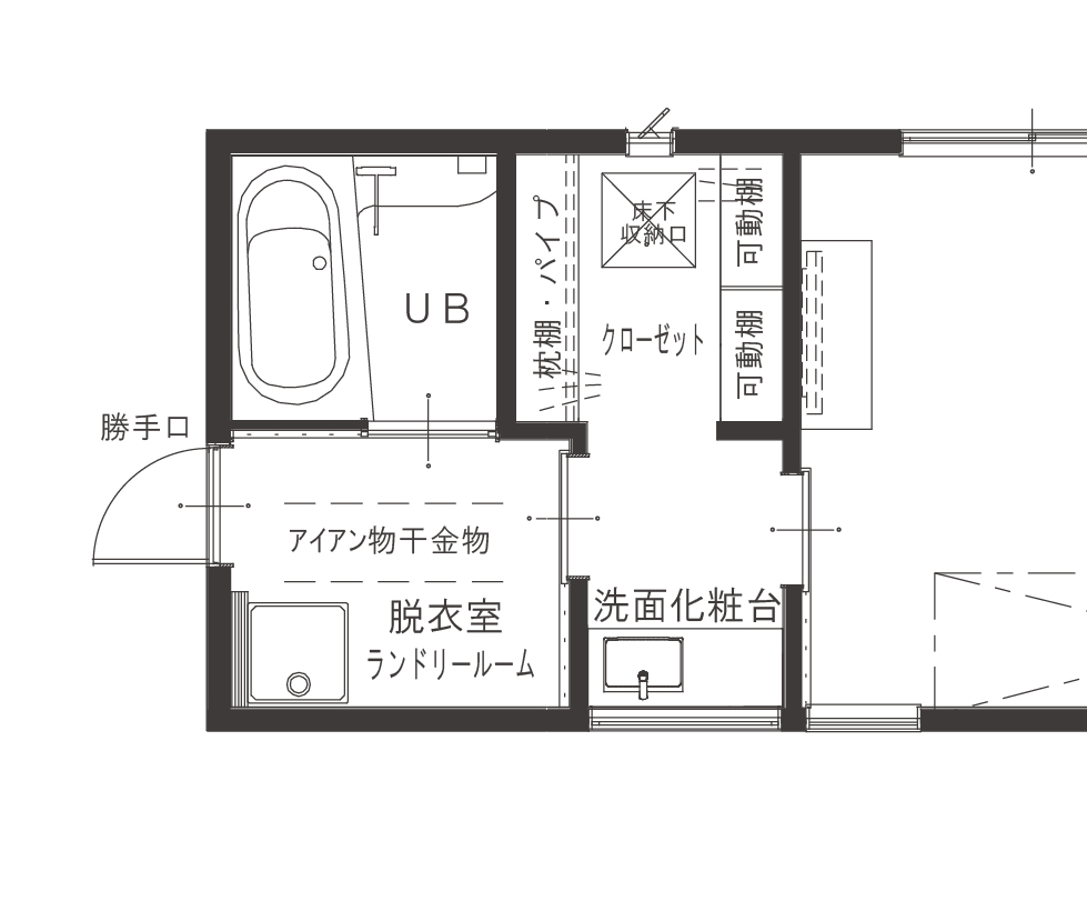 洗面脱衣室から洗濯物を庭先やベランダなどへ運ぶといった移動がなくなり、 洗濯、乾燥、アイロンがけ、折りたたみなどの作業を一つの部屋でまとめて行うことができるため、家事が効率的に進められます。