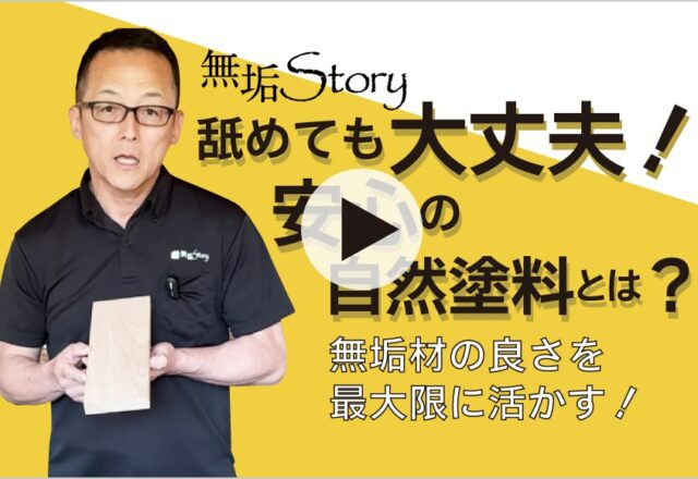 動画の文字起こし 山喜建設の専務の布目です。塗装担当の細江です。 舐めても安心!リボス塗料 布目 今日は 無垢ストーリーの本社工場の塗装室におじゃましています。 今日は無垢ストーリーで使用しているリボス塗料についてお話をさせていただきます。 皆さんは塗料っていうと、シンナー臭い…