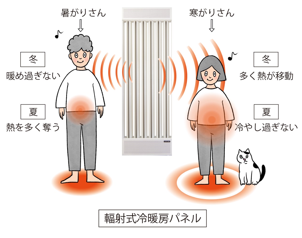 その理由は・・・風の出ない“輻射式”冷暖房パネルを採用