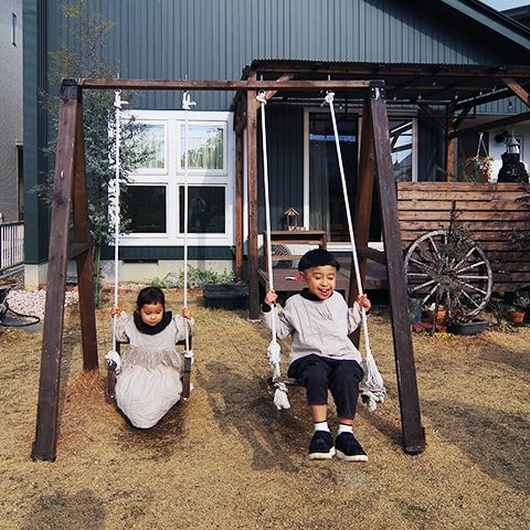 リビングやキッチン玄関や照明にもさりげなく飾られたドライフラワーやハンドメイドでつくられた小物。自然素材の家に手を加えながら暮らすことを楽しむT様。まるで絵本の中にいるような空間は特別で、訪れた人も癒してくれます。また、将来を見据えて生活するスペースはすべて一階で二階は子ども部屋のみ。二階はお子様が将来独立したあとでも物置や客間などあると便利なプラスαの部屋として活躍してくれる平屋風のお住まいです。