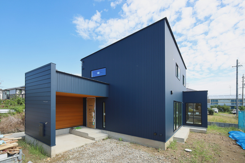シンプルかつ存在感のある外観には、ネイビーのガルバリウムを施工してあります。