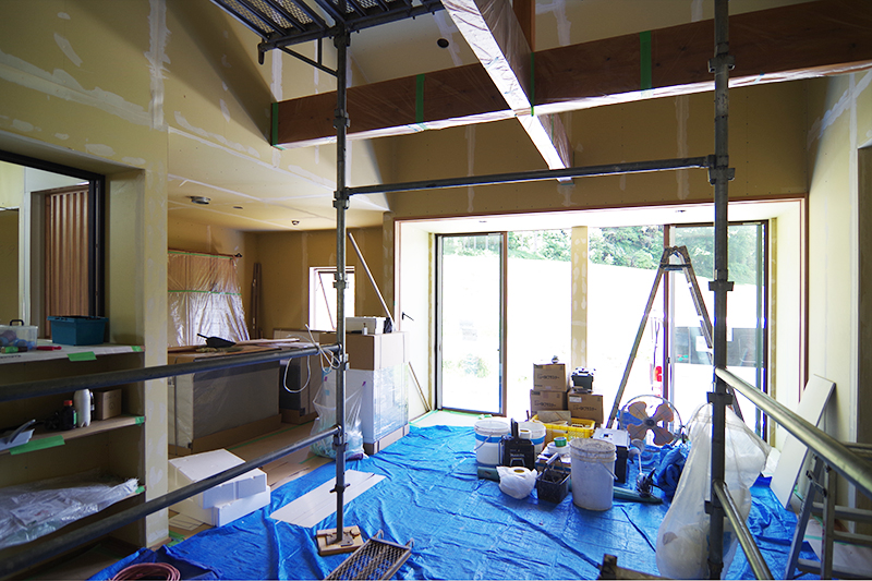 十字の化粧梁まで登れるキャットウォークがつくられます。