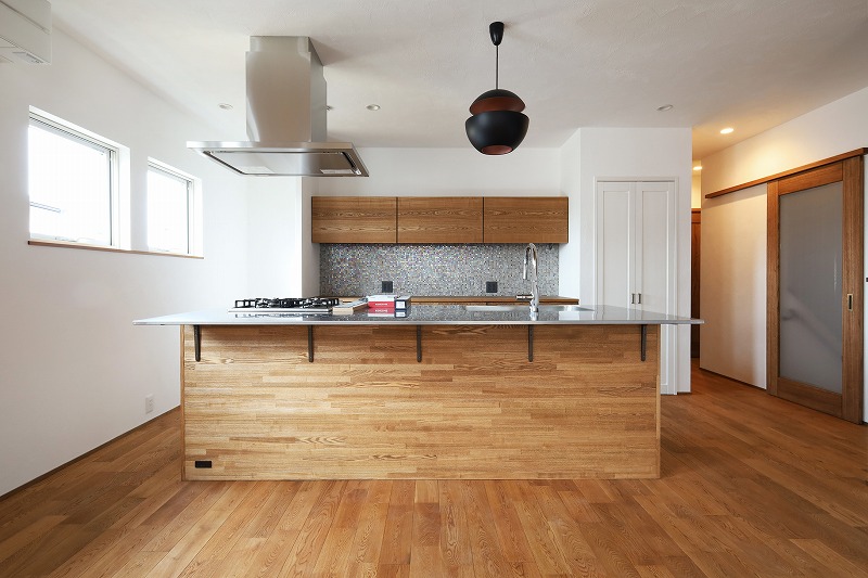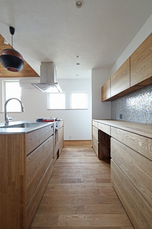 無垢をふんだんに使ったオーダーメイドキッチンと背面収納は無垢ストーリーのオリジナルです。