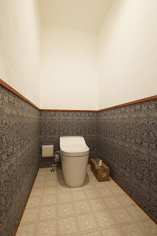トイレの壁紙の一部と床もアクセントでウィリアムモリスに^^