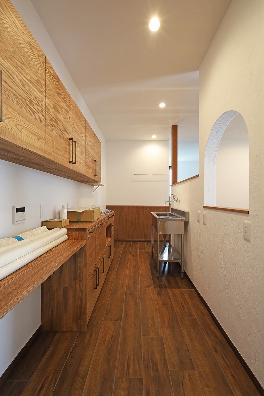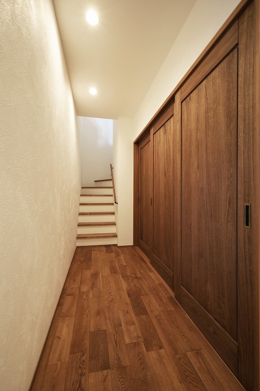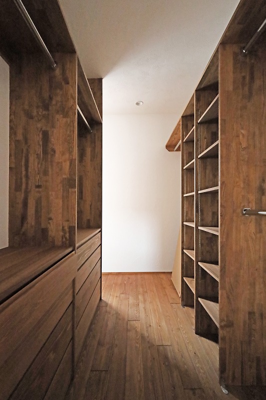 仕切り壁の裏側には回遊できるオーダーメイドのクローゼットがあり、収納するものを想定し細部までこだわりました。