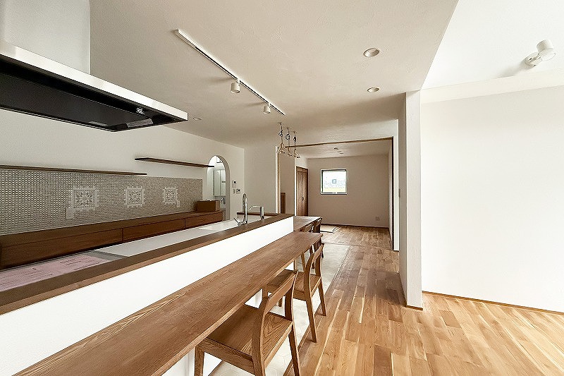 キッチン前には家事をしたりお勉強をしたり多用途に使えるカウンターを作りました。