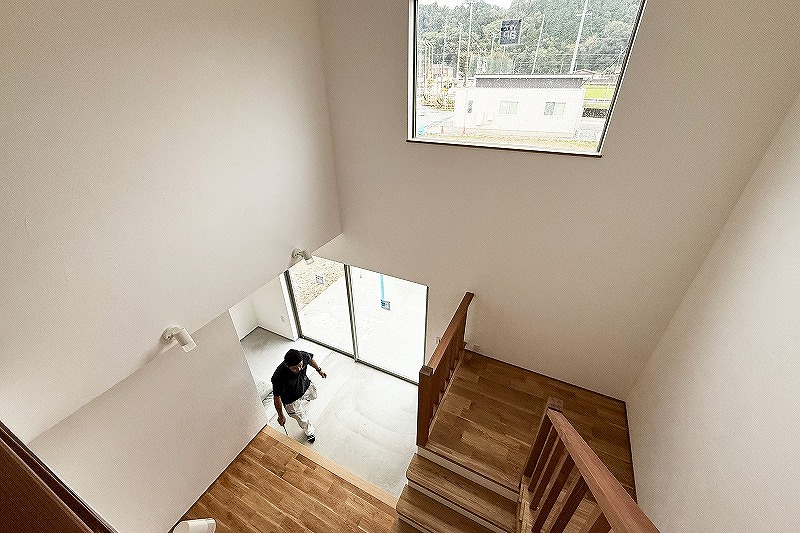 2階からは土間リビングをのぞみます^^