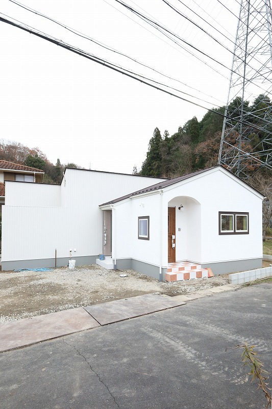外観はホワイトのガルバリウムと白の漆喰を組み合わせました。