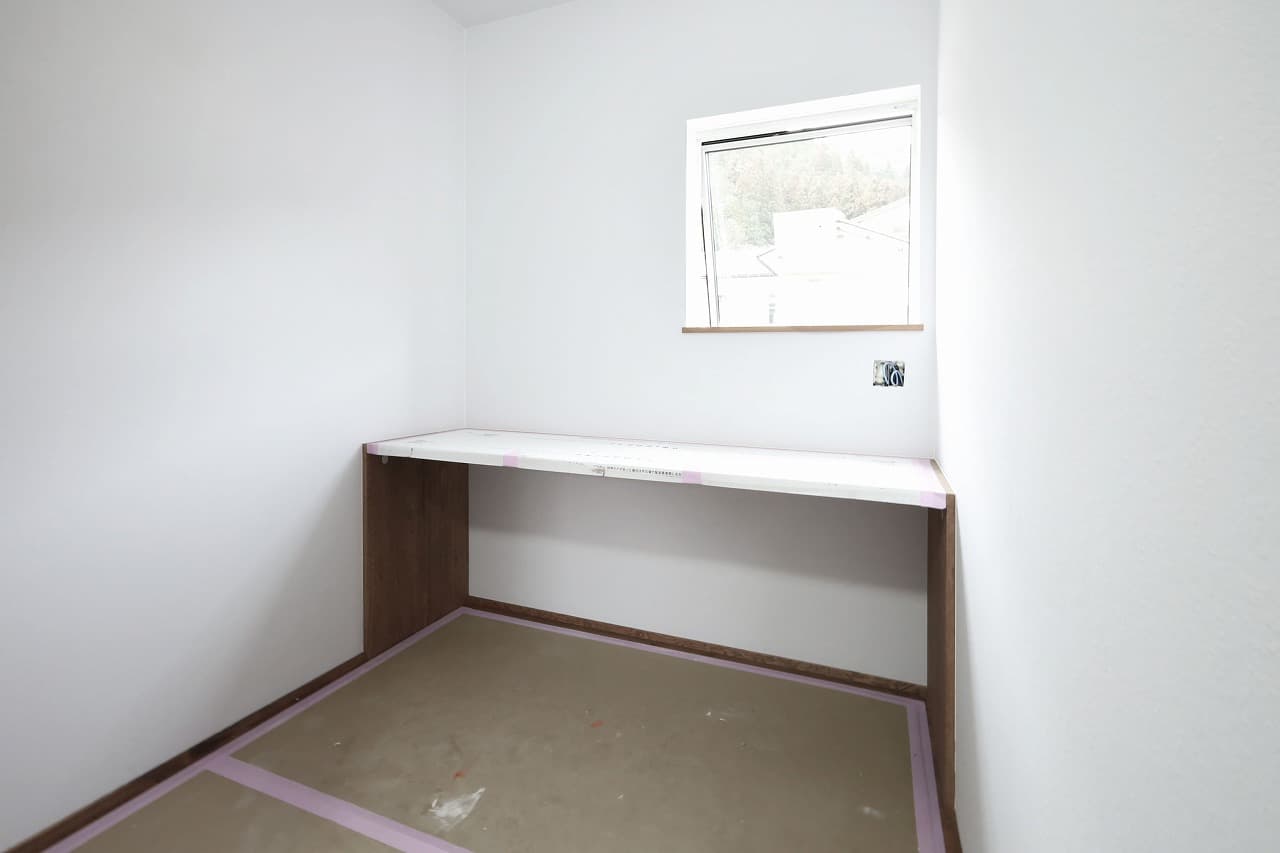2階には子ども部屋が2つとご夫婦それぞれの書斎スペースを設けました。書斎スペースには大容量の可動棚が取り付けられます^^お手持ちの本や細かな物なども収納できる便利なスペースになりそうですね。