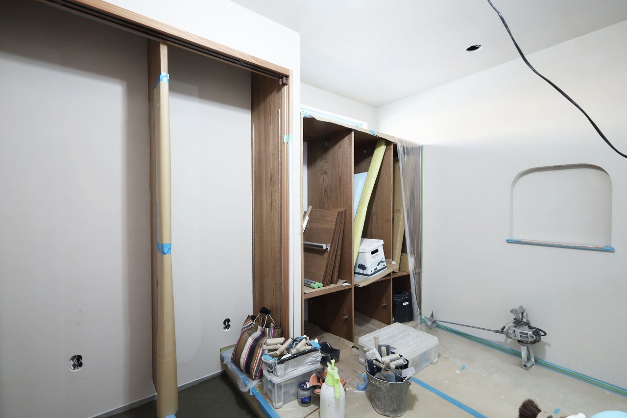 今回完成するのはのランドリールームから一直線でファミリークローゼットへとつながる家事ラク動線、ちょっとしたスペースを有効活用したりと、参考になること間違いなしの暮らしやすいお住まいです。