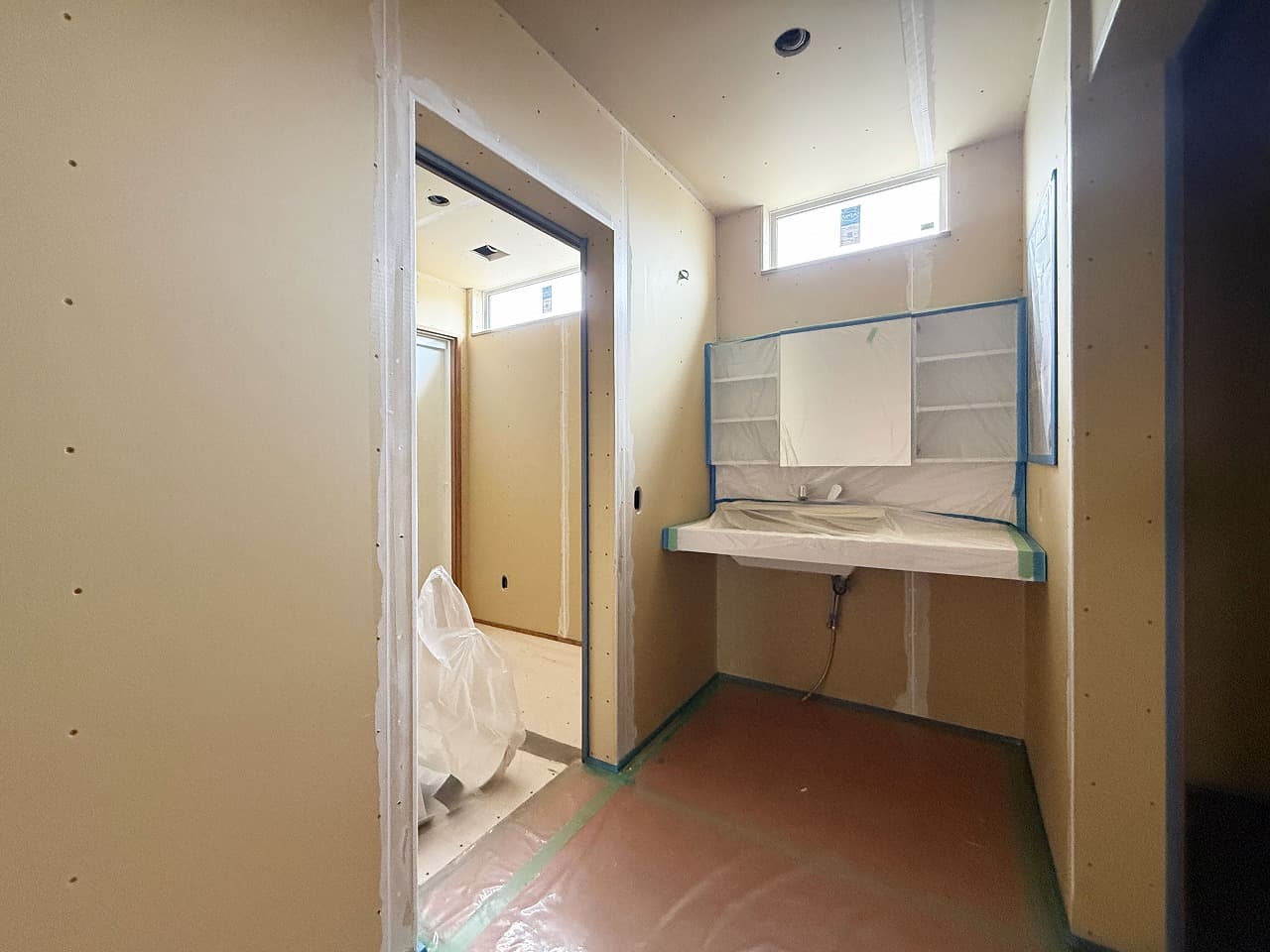 北側にはオープンの洗面化粧台、お手洗いとお風呂がスッキリとまとまっています。