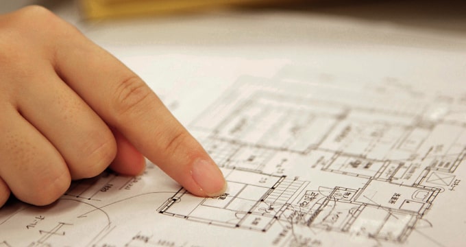 構造や間取りといった基本プランが確定したら、CADシステムを使ってコンピューターによる詳細な設計図面を作成致します。正確な寸法や仕様などが記されており、見積もりをお出しするためにも必要となります。