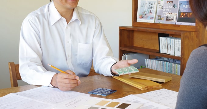 思い描いてきた家への夢をカタチにしていきます。間取りや外観、インテリア、仕様など、ご希望やこだわりをお聞かせ下さい。その他資金や税金に関することなど、家に関する全てのご相談を当社ハウジングアドバイザーがお受け致します。