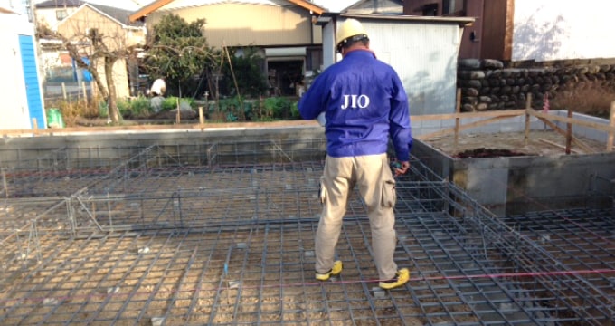 基礎のコンクリートを打設する前に、基礎配筋が適正に施工されているか、また瑕疵を予防するために、JIOの検査員が検査をします。