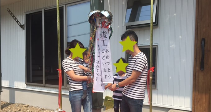 上棟式は新しい家への祝福とともに、職人達のねぎらいと工事の無事を祈願する儀式で建前(タテマエ)棟上(ムネアゲ)とも言います。最近では簡素化される場合が多くなっていますが、当社では【餅撒き】などのイベントもお手伝いさせていただいております。