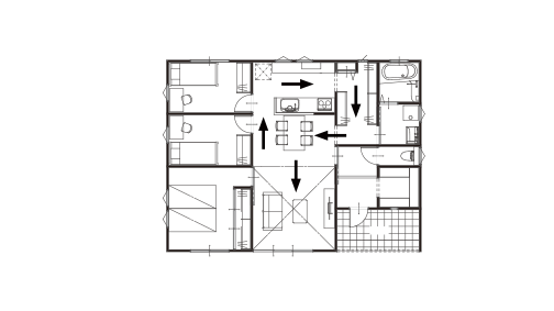 平屋は平行移動だけで家事や生活ができるので、二階建てに比べると無駄のない生活動線を計画しやすくなります。