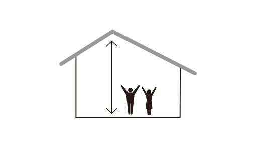 大空間や大きな開口をつくれる平屋は1階部分に2階の重さがかからないため、建物の構造が安定します。耐震性も高まり、柱や壁が少ない広々とした空間や大きな開口部をつくりやすくなります。2階が無い平屋は屋根の下にある小屋裏を活用したり、勾配天井にして、開放感を演出することもできます。