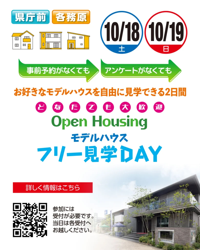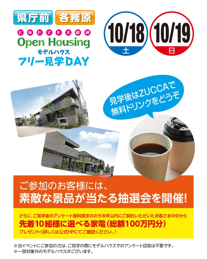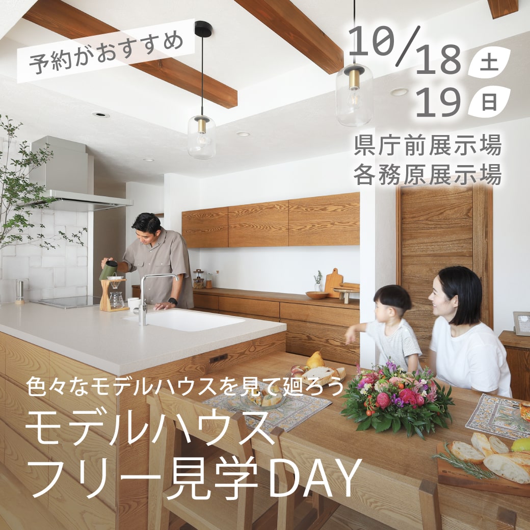 無垢ストーリーの出展している岐阜ハウジングギャラリー(県庁前展示場・各務原展示場)では、10月18日(土)・19日(日)に「モデルハウス、フリー見学DAY」を実施します。