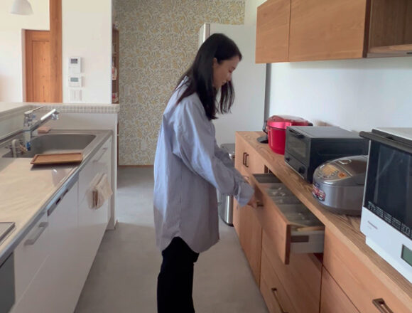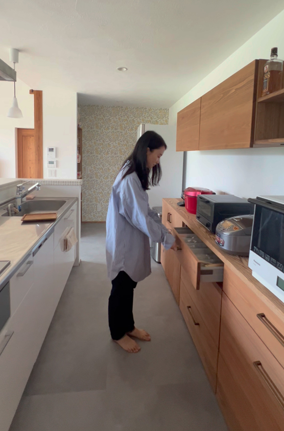 子どもが生まれて、物が増えてきて収納が少なく、アパートでは手狭になってきたのがきっかけです。アパートにいた時は寝室に収納があり、家族が寝ている時に夫が物音を建てる生活音にイライラしたこともありました。