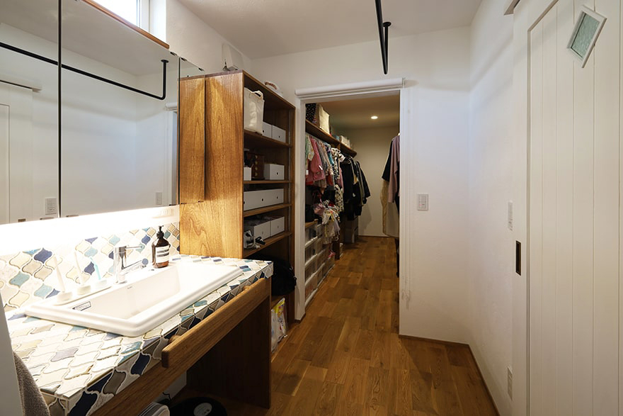 ファミリークローゼットや脱衣室の収納です。家事導線を意識して欲しい所に欲しい収納を設けることができました。自分でしっかり情報の洗い出しをやったおかげで実現できたかなと思います。1階に2つのトイレ(旦那さんとセパレート、子供のトイレトレーニングを見守れる)をつくったのも良かったです。全体的に老後のことを考えて間取りを考えたし、様々なレイアウトに対応できるように、コンセントは多く設置しました。