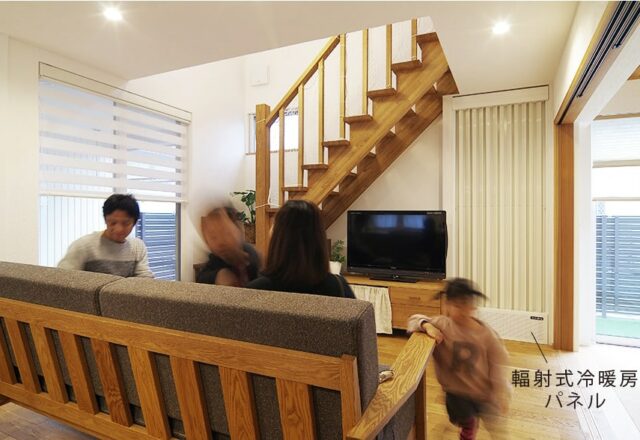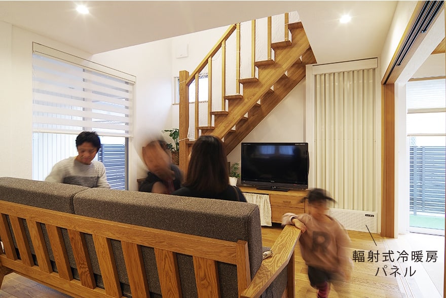 夏場はひんやりする輻射式冷暖房パネルのそばが家族のお気に入りです。