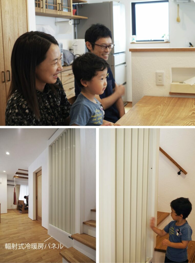 最初はこんなパネルで家中が暖まるなんて信じられなかったんですけど、冬から暮らし始めて、リビングのエアコン1台だけで、設定温度も特に高くしなくても本当に2階まで暖かくなって。すごいなーと実感しました。私(奥様)は足が冷えたりしてたんですけど、足元が冷えなくなりました。