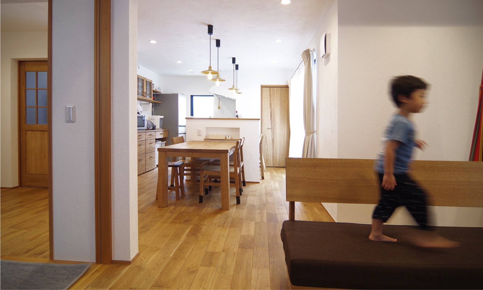 子供が生まれたのがきっかけで、2年以上前から考えていました。 以前はアパート暮らしで、最初はハウジングセンターなど展示場をみたり知人に大手メーカーを紹介してもらったりしました。 紹介してもらった家はとても良い家だなとは思ったんですけど、家の雰囲気がもっと違う感じがよくて、 自然素材だったり、ナチュラルな感じが良いなっと思っていました。2人とも寒いのが苦手なんで床暖房もいいなと思っていました。