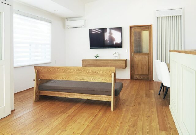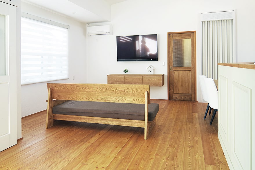 最初は自然素材に対してあまり興味がなかったんです。でも自分でケアが出来るし、愛着がもてます。匂いも気にならなくなりました。漆喰はすごいなって感じてます。洗濯物もほんとに良く乾きます。ソファも気持ちが良くて寝ちゃいます(笑)