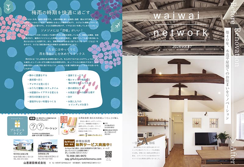 春・秋・正月の年3回、季刊情報誌「ワイワイネットワーク」をお届けいたします。住宅のお手入れ方法や、マメ知識、新商品の案内お客様の暮らしに役立つ情報を配信しています。