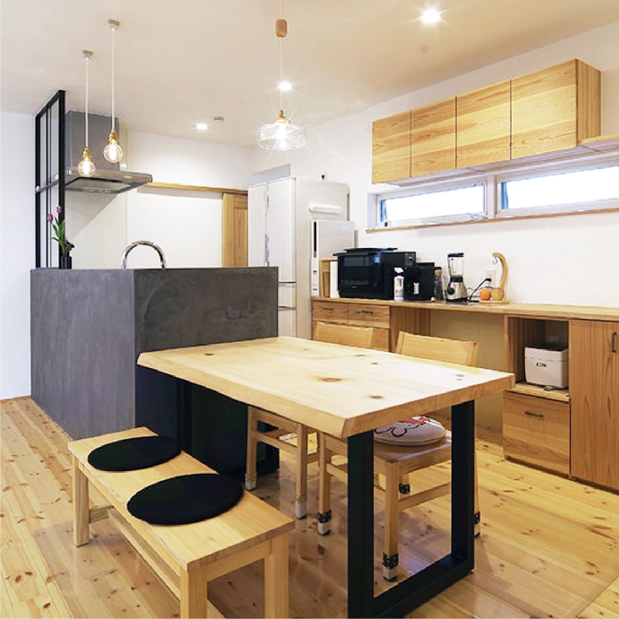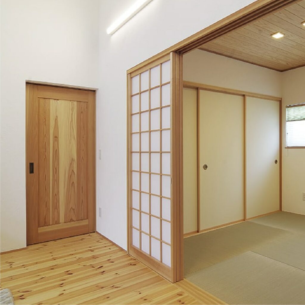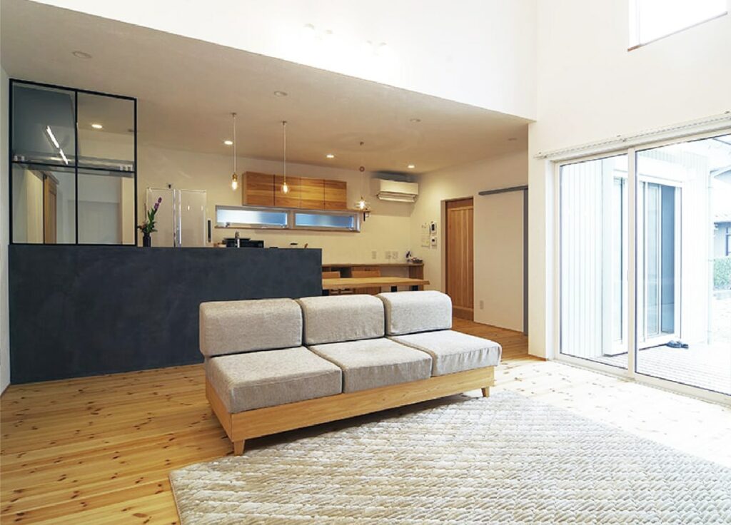 【内部】内装工事(漆喰・オガファーザー・パイン無垢・Be wood建具)・空調設備工事・タイル左官工事・電気工事・配管工事・設備設置工事・バス・トイレ(1F)・キッチン