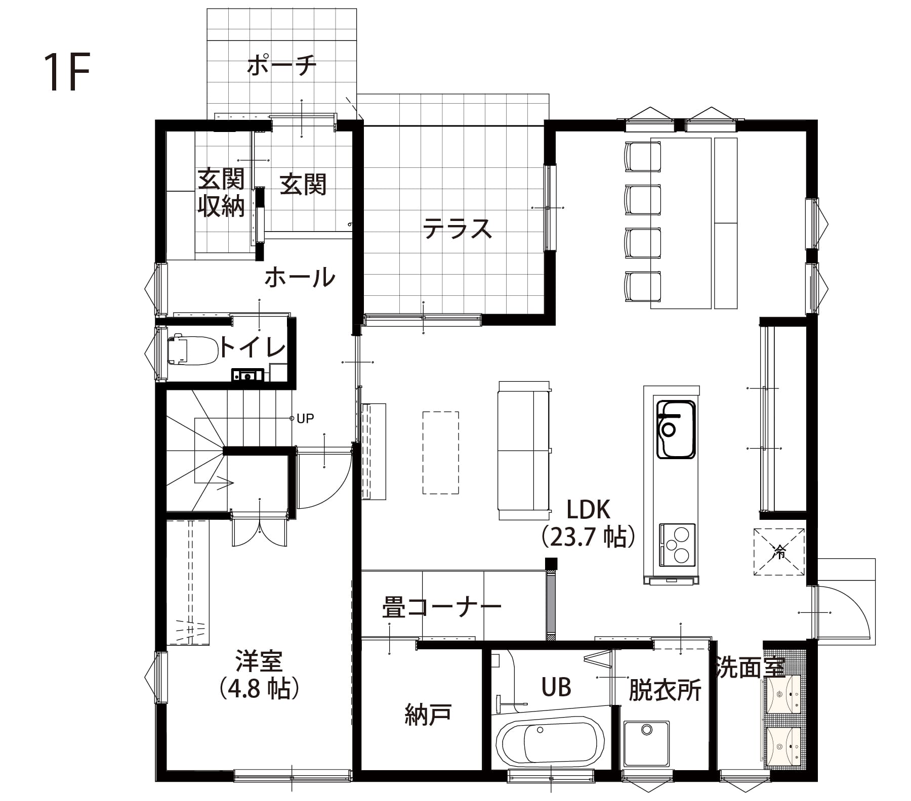 - 1F床面積 75.36㎡(22.76坪)